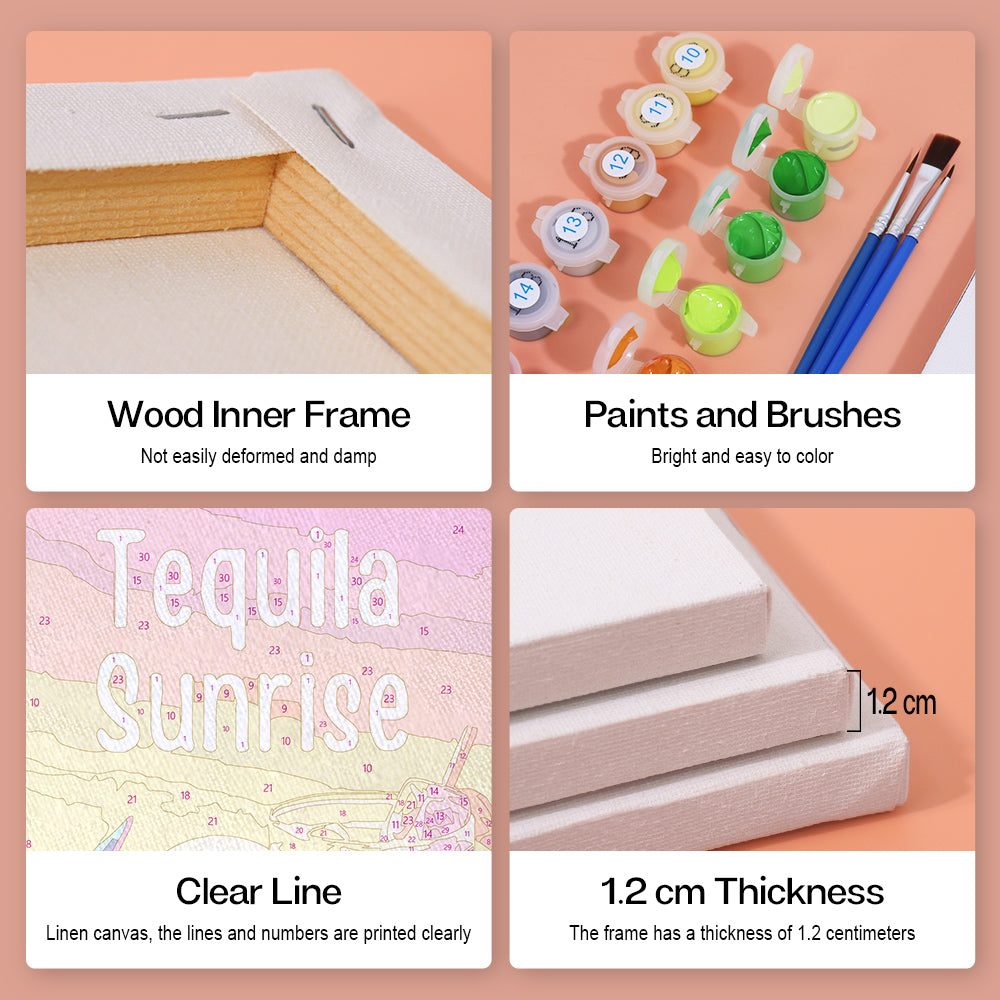 • Číslované plátno z kvalitnej bavlny (naťahnuté na drevenom ráme)