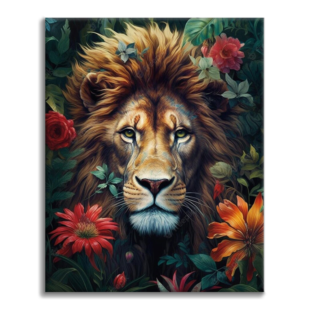 Maľovanie podľa čísel - Lístie a zúrivý lev