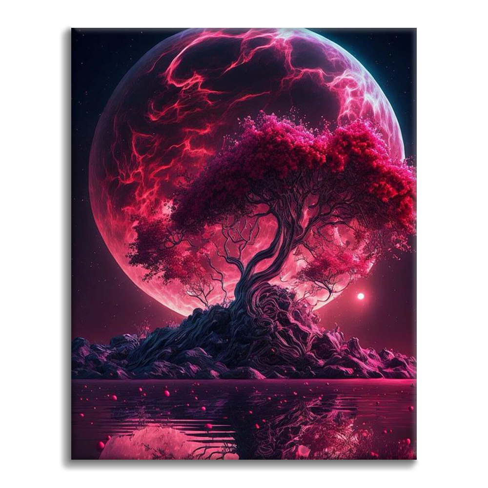 Maľovanie podľa čísel - Stromy pod mesačným svitom