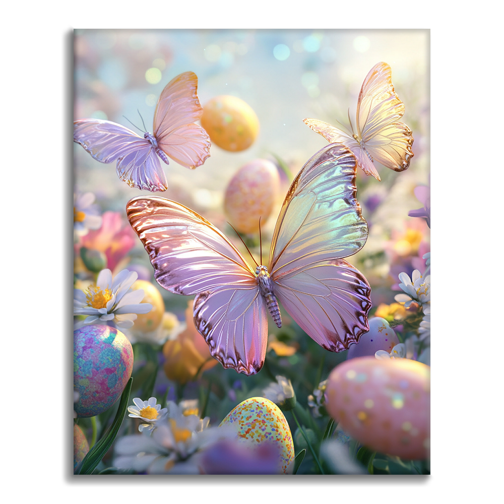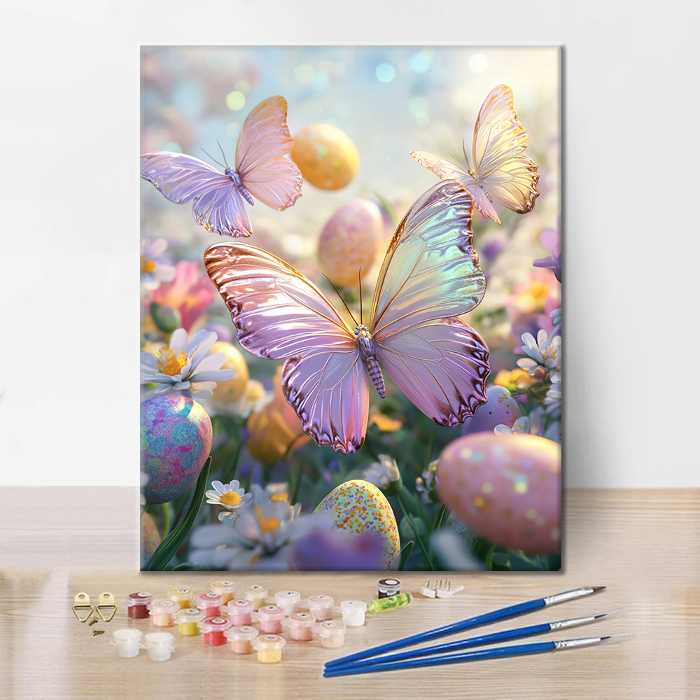 Maľovanie podľa čísel - Jarné motýle a vajíčka