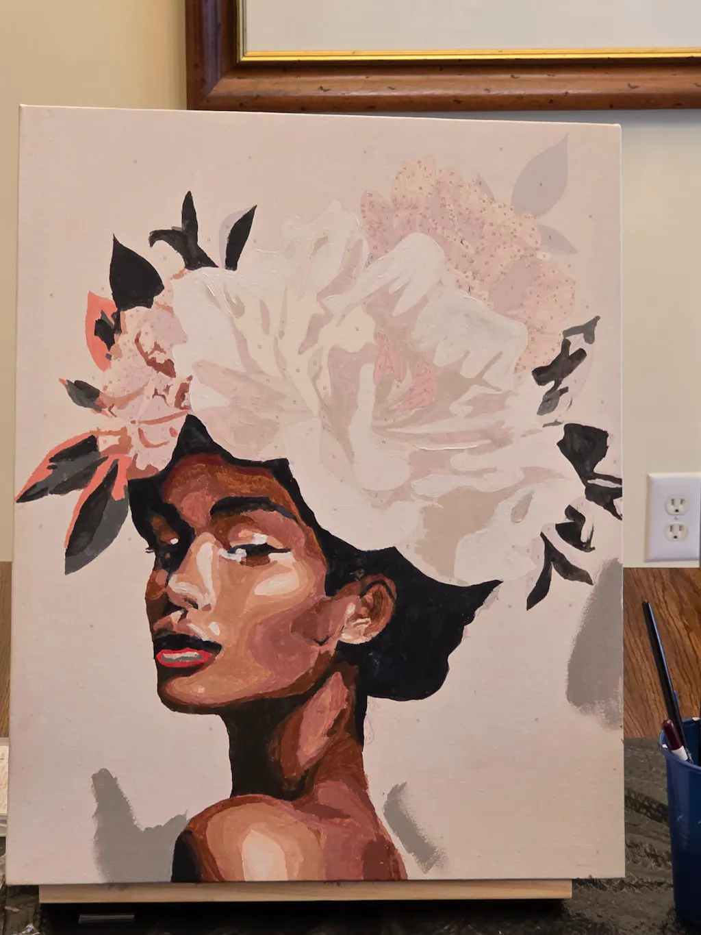 Maľovanie podľa čísel - Žena s kvetinovými vlasmi